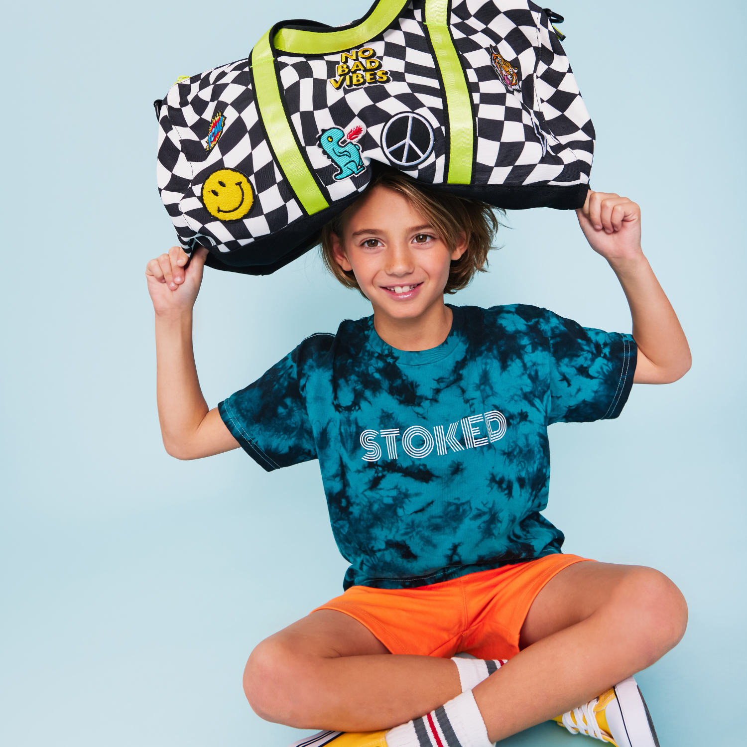 The webbing crossbody strap is adjustable for a comfy fit for any kiddo.
