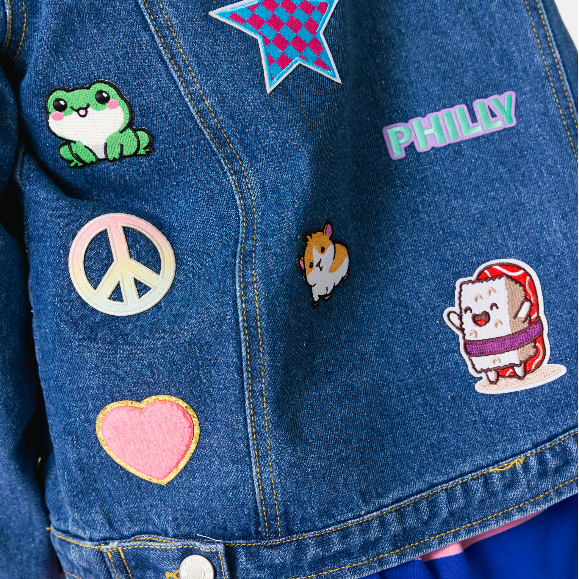 We offer a wide size range catering to the fashion-forward toddler to the too cool for school teenager. Our vast customization options allow your child to select from an array of patches, colors, and layouts. Your imagination is the only limit! Please note. Our Little Chicken denim jackets run true to size, but it is always nice to have an oversized look and room for your kiddo to grow into the jacket.
