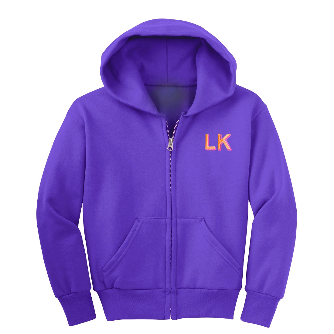 Discover the perfect blend of style and comfort with our kids' hooded sweatshirt, featuring 2 color block embroidered initials on the front left chest. Made from a soft cotton/ poly blend this cozy hoodie is ideal for school, playdates, or hanging at home. Available in a variety of vibrant sweatshirt colors and thread combos.