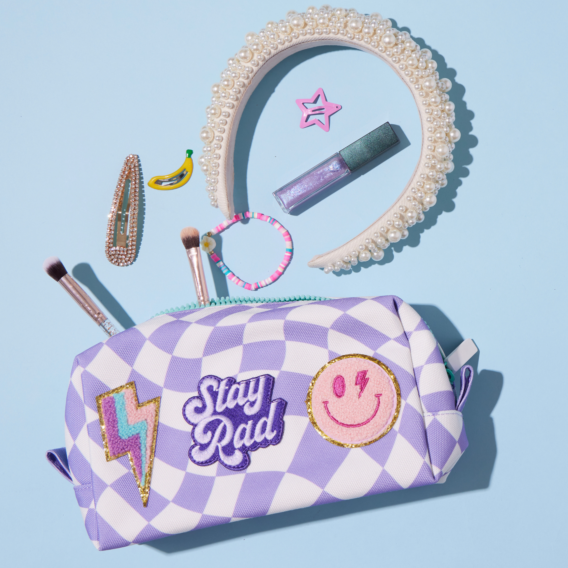 Purple Checker Pre-Patched Pencil Pouch- Ships The NEXT DAY!