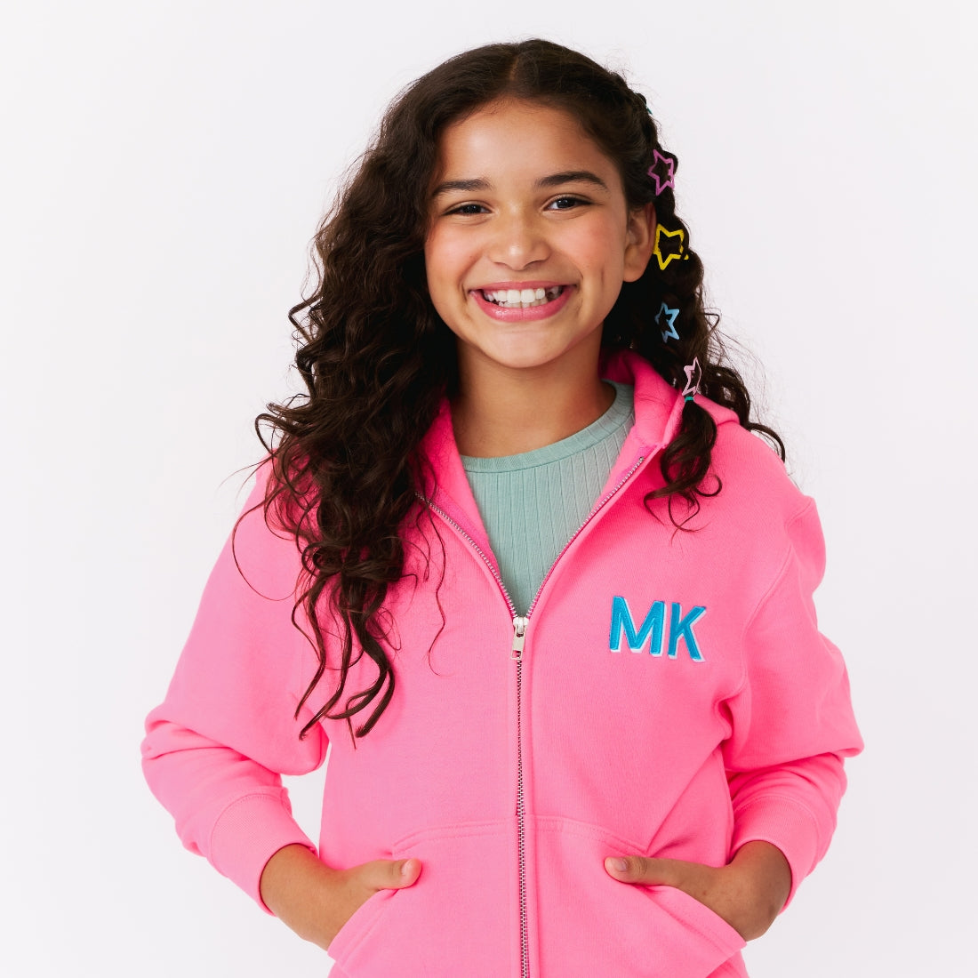 Discover the perfect blend of style and comfort with our kids' hooded sweatshirt, featuring 2 color block embroidered initials on the front left chest. Made from a soft cotton/ poly blend this cozy hoodie is ideal for school, playdates, or hanging at home. Available in a variety of vibrant sweatshirt colors and thread combos.