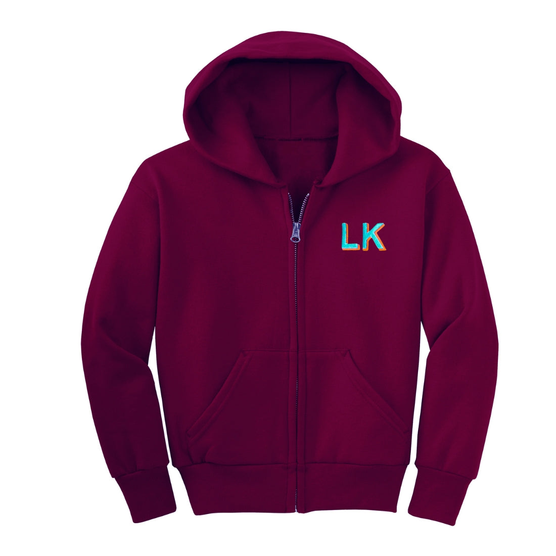 Discover the perfect blend of style and comfort with our kids' hooded sweatshirt, featuring 2 color block embroidered initials on the front left chest. Made from a soft cotton/ poly blend this cozy hoodie is ideal for school, playdates, or hanging at home. Available in a variety of vibrant sweatshirt colors and thread combos.